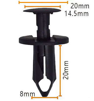 Tutvustame meie kvaliteetseid plastikust kinnitusdetailide klambreid, mis on loodud selleks, et pakkuda turvalist ja usaldusväärset ühendust erinevatele rakendustele. Nendel mustadel klippidel on ümmargune pea läbimõõduga 20 mm ja kõrgus 14,5 mm, tagades lihtsa käitlemise ja paigaldamise.