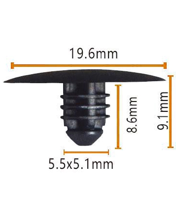 Selle kruvi ülaosa on mõeldud lamedaks, läbimõõduga 19,6 mm ja pikkus 8,6 mm, tagades sõiduki kõigi osadega tiheda sobivuse. Tõstetud osa keskel on läbimõõt 5,5 mm ja kõrgusega 5,1 mm. See ainulaadne disain mitte ainult ei suurenda kruvi pingutamise mõju, vaid muudab ka paigaldusprotsessi sujuvamaks. Põhi on tasane ümmargune alus, mille läbimõõt on 9,1 mm, mis pakub kruvile stabiilset tuge. Üldine suurus on selgelt tähistatud, mis on teile mugav kasutamisel kiiresti tuvastada ja valida.